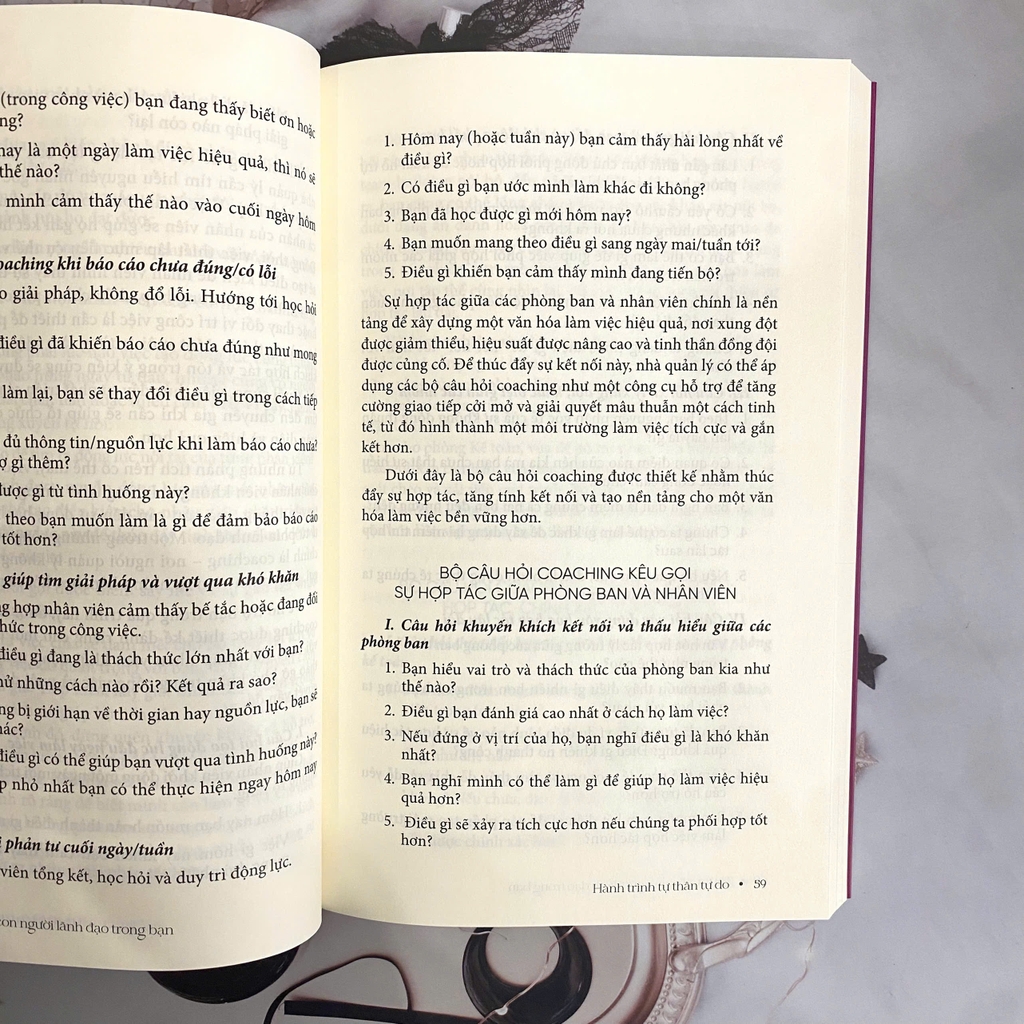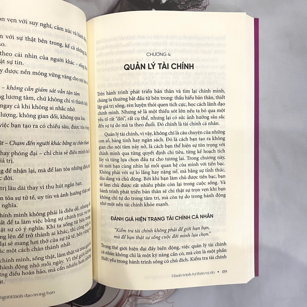 Khi đã hiểu về chính mình, cuốn sách tiếp tục dẫn dắt người đọc bước sang một giai đoạn quan trọng: Hành trình tự thân tự do. Ở phần này, bạn sẽ được hướng dẫn nguyên tắc ứng xử trong công việc và đời sống, các bước chinh phục mục tiêu và quản lý tài chính. Tác giả kết hợp lời khuyên nội tâm với công cụ thực hành: từ việc nuôi dưỡng yêu bản thân, bảo vệ năng lượng cá nhân, tới bài tập hình dung và lộ trình 7 ngày để nuôi dưỡng sự tò mò, tất cả nhằm giúp bạn xây dựng nền tảng nội lực vững vàng trước khi bước vào vai trò lãnh đạo.