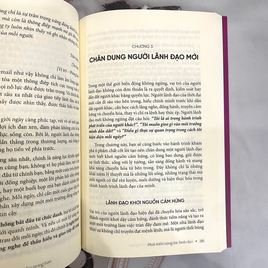 không phải “điều khiển người khác”, không phải “ra lệnh”, mà ảnh hưởng bằng sự hiện diện, truyền cảm hứng bằng tâm thái, hướng dẫn bằng sự rõ ràng nội tâm. Trong phần phát triển năng lực lãnh đạo, người đọc bắt đầu hiểu rằng: người lãnh đạo đích thực không phải là người đứng cao nhất, mà là người nhìn sâu nhất. Không phải là người nói nhiều nhất, mà là người nghe giỏi nhất. Không phải là người nắm quyền lực, mà là người khơi nguồn sức mạnh nơi những người xung quanh.